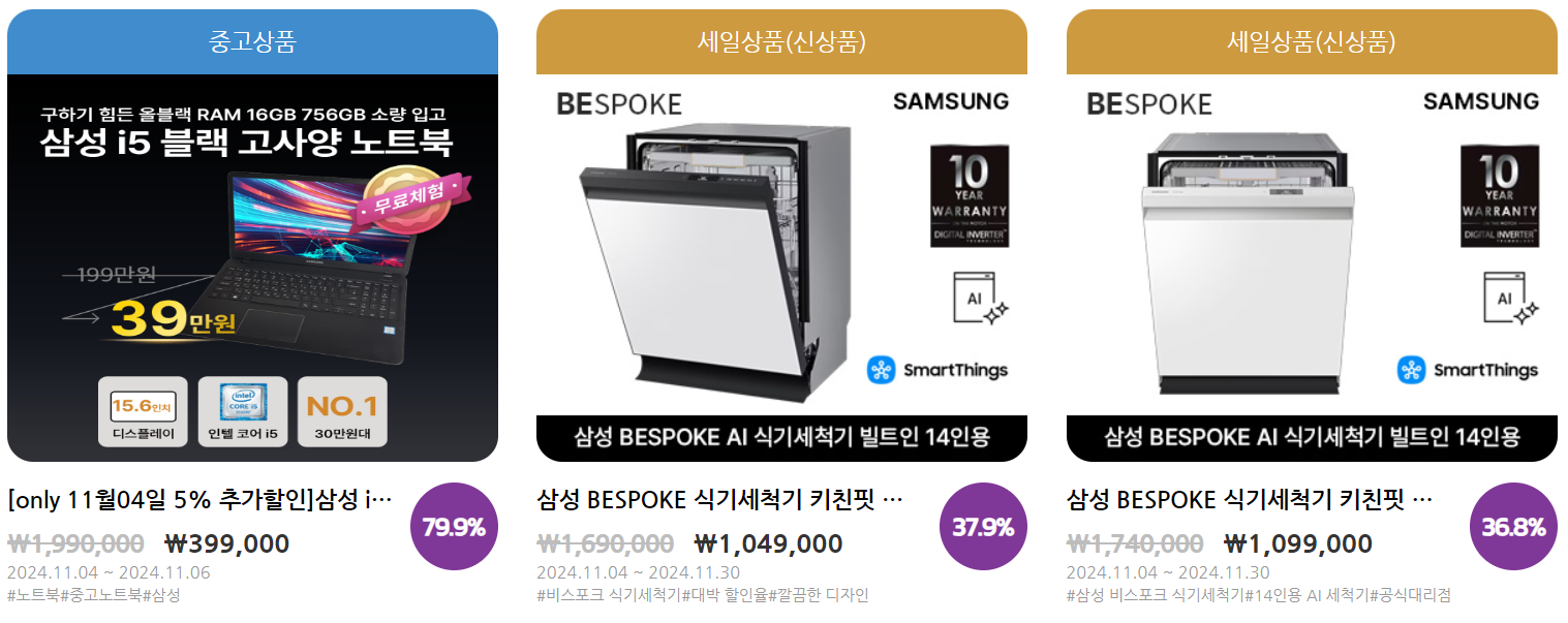 G마켓, 11번가, 쿠팡 등 다양한 온라인 쇼핑몰에서도 코리아 세일 페스타에 맞춰 삼성전자 제품에 대한 할인 이벤트를 진행합니다. 이와 함께 특정 쇼핑몰에서 제공하는 쿠폰을 추가로 다운로드하고 적용하면, 더 큰 할인 혜택을 받을 수 있습니다. 삼성전자 제품의 가격을 줄이기 위한 다양한 쿠폰을 적극 활용하세요.