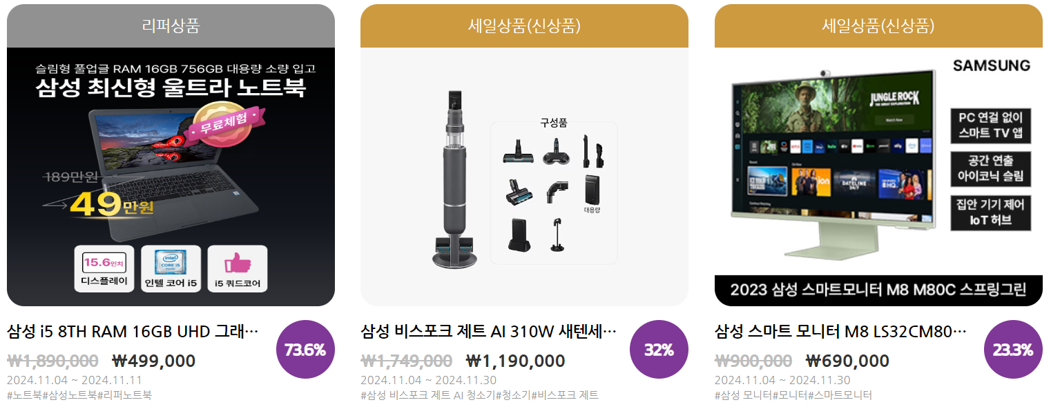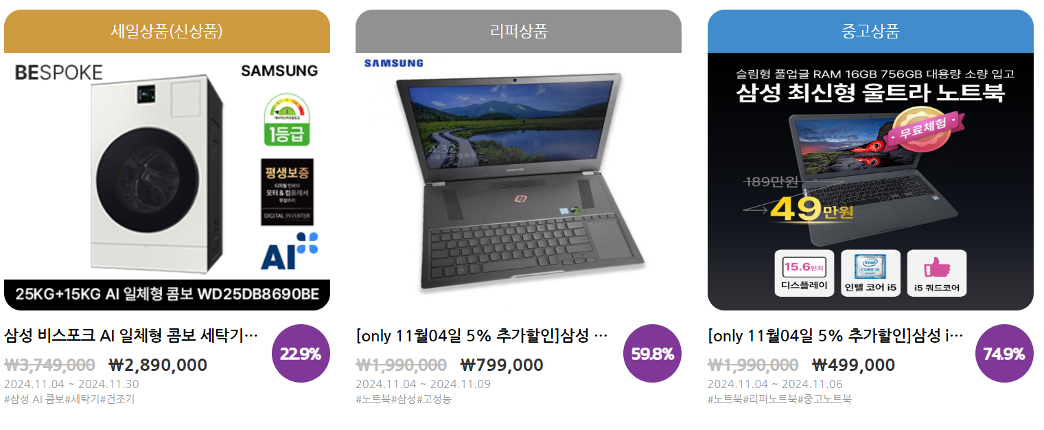 할인 행사 기간에는 삼성전자 리퍼브 제품이나 중고 제품도 좋은 구매 옵션이 될 수 있습니다. 리퍼브 제품은 새 제품과 유사한 성능을 보장하면서도 가격이 저렴하므로, 추가 비용 절감이 가능합니다. 삼성전자 리퍼브 제품은 품질과 비용 면에서 큰 이점이 있습니다.